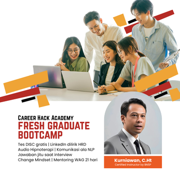 Pemateri Bootcamp adalah Kurniawan,C.Ht seorang praktisi HR dan Certified Instructor BNSP yang telah berpengalaman puluhan tahun dalam Pengembangan Sumber Daya manusia. Bergabunglah sekarang dan jadilah kandidat yang menonjol di mata HR!